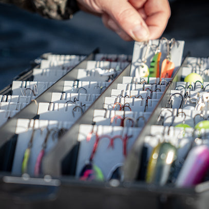 The Hangr features a patent-pending Snap-N-Lock angled divider system that keeps your baits neatly separated and securely locked in place. Storing baits at an angle not only maximizes capacity but also minimizes tangling, making it easier than ever to find and grab the perfect lure.