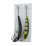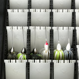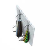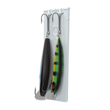 The Hangr's Infinity Divider Technology allows for secure, customizable storage of various bait sizes, including treble hooks. Its snug-fit notches keep baits in place, even in rough water, while maximizing space for bulk storage.