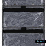 The roll-up design not only optimizes space as it is comparable in size to a 3600-tackle tray, but also enhances portability, allowing you to conveniently carry your arsenal of baits. The 10” bag houses baits under 10 inches in length and is the perfect size for many of the average size Glide Baits or Wakebaits. The 14” bag houses baits under 13 inches in length and is a go-to for hardcore swimbait fishermen. Four versatile gusseted pockets allow plenty of room within for large baits, soft plastic bags, and soft swimbait clam shells. One external pocket gives the angler room for bait accessories like extra tails and led wire. Each pocket is equipped with two weep holes ensuring water will not get trapped inside. Whether you're a shore fisherman or fishing competitive tournaments, rest assured that your baits remain organized and protected within this sleek and thought-out bag. Embrace the epitome of durability and functionality with our Roll-Up Big Bait Bag, the ultimate solution for big bait storage.