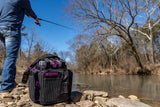 With its open top feature and extremely rugged wear-resistant 1680D construction, the Drift Series Topless Vertical Tackle Bags deliver the quality and functionality that Evolution Fishing is known for. These Drift Series Tackle Bags have an innovative large mouth, open top feature that provides quick and easy access to all your trays. Slide your trays in vertically with this version of the tackle bag. The integrated tie down Y-Strap will secure your trays in the bag, and in case of stormy weather, these bags are equipped with an integrated rain fly that you can zip up and store away when not in use. With 3 large exterior storage pockets and 4 rubber mesh slip pockets, you’ll have plenty of room to store all your accessories. It’s also equipped with a plier holster, side pocket line spool feed, and a non-slip, waterproof bottom with integrated drainage grommets. Transporting these tackle bags will be a breeze with the adjustable, removable shoulder strap and the padded top carry handle. With the capacity to hold up to 5 tackle trays, it’s more than capable of holding all your fishing essentials. Each tackle bag will include 5 matching color Drift Series Tackle Trays.
