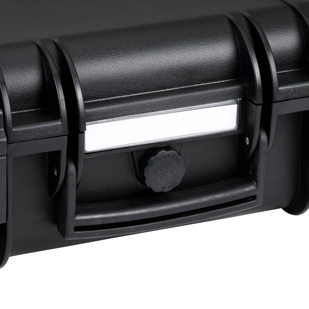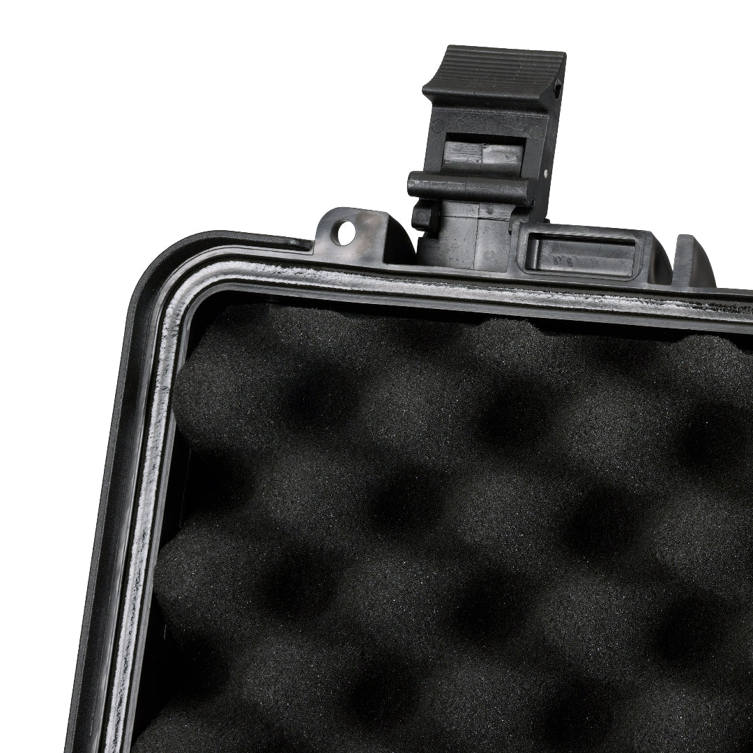 The interior features customizable pick-n-pluck foam and an egg-crate top layer to ensure a snug, impact-resistant fit for up to four full-frame pistols or other valuable gear. A secure latch system, TSA-approved dual padlock hasps, and a pressure equalization valve provide peace of mind during storage, travel, or transport.