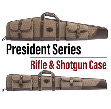 Experience the new Evolution Outdoor President Series SHOTGUN CASE.This is truly a PREMIUM GUN CASE. With its antique brass features & dual compound foam, not only does this case look good but will keep your firearm fully protected. It has dual accessory pockets & fits scoped rifles. This is a fantastic, QUILTED SHOTGUN CASE for your best firearm. This case is available for rifles, shotguns, & pistols.