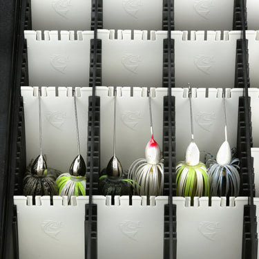 The Hangr features a patent-pending Snap-N-Lock angled divider system that keeps your baits neatly separated and securely locked in place. Storing baits at an angle not only maximizes capacity but also minimizes tangling, making it easier than ever to find and grab the perfect lure.